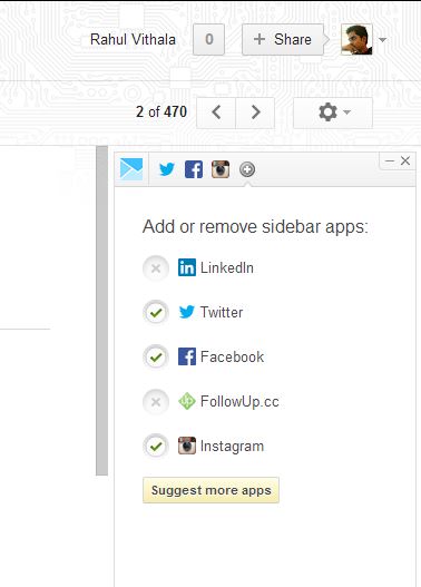 It is a simple extension which works instantly with your email service. After enabling sidebar, you have to choose services by adding apps. In order to use apps, first, you need to authorize it. Once you’ve authorized your accounts to connect with the apps you’ve enabled. Now you can instantly view and post Social media updates without opening an extra tab in your browser.