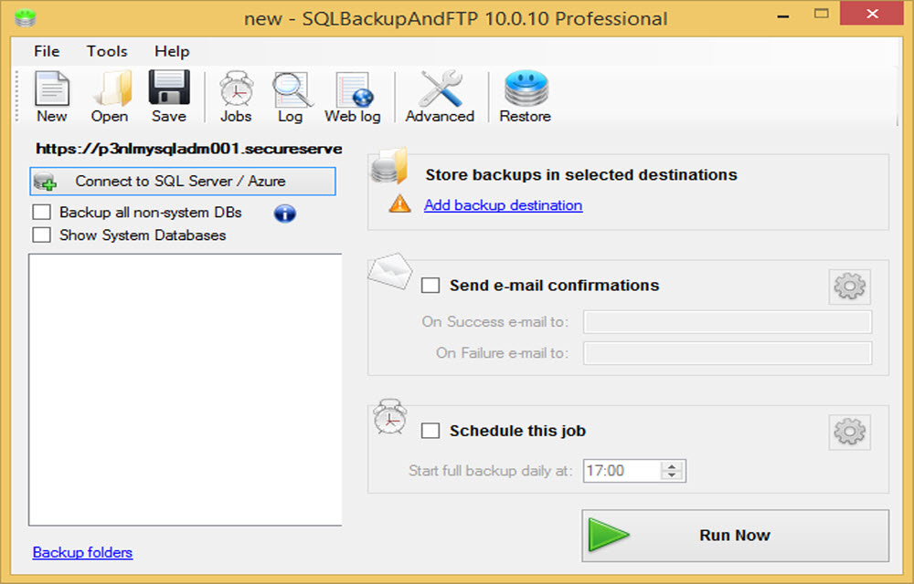 SQLBackupAndFTP aim is simple, it lets you to backup database SQL with various options. You can save your SQL database in Zip format with encryption on a remote FTP location. To get started download the program from the official website and install it. After opening the program, it starts with a simple box with login options. In order to login into the server, you need to enter your server name using Windows Authentication or SQL server authentication.