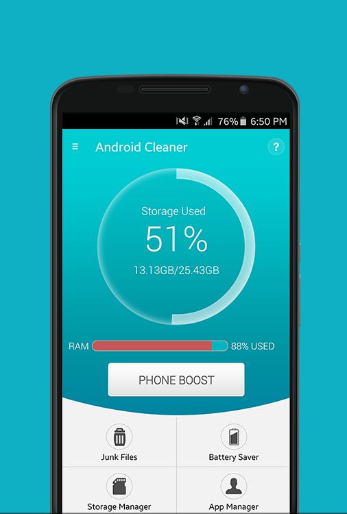 We found Systweak Android Cleaner to be one of the simplest applications to use the phone optimization category. All important features can be accessed from the home screen, which also shows the percentage of used “storage space” and used RAM. There is a Phone Boost button and below that, lies all four modules of the app (details later).