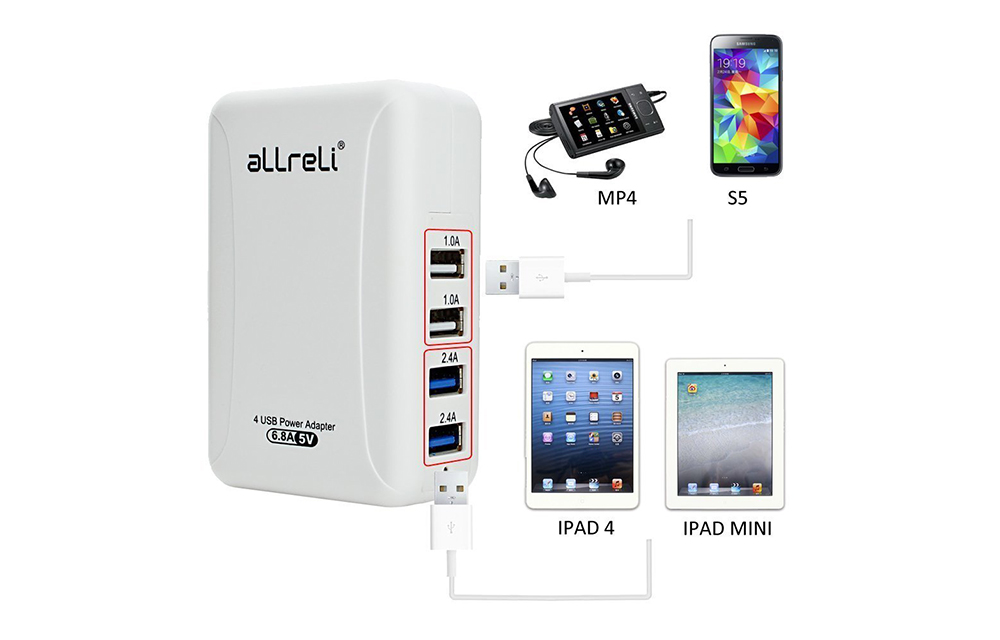 aLLreLi 34W / 6.8A 4-Port USB Wall Charger is a very useful product that can fulfill all your charging needs with just one device. In your long journeys and adventurous travels, it is very difficult to carry all those chargers for your Smartphones, iPads, Tablets, Power Banks, GPS systems, etc… All those chargers will make a luggage only for them itself. So, avoiding them is necessary with a good device that can charge any of your devices without any compatibility issues. The aLLreLi 34W / 6.8A 4-Port USB Wall Charger is such a device that greatly help you to charge all your devices without any compatibility issues.