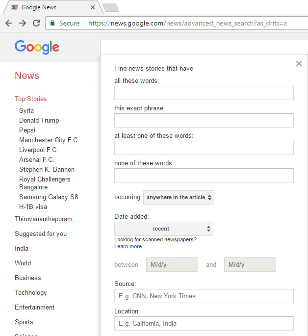You can fetch news and information dating back to 100 years by visiting the Google Archive page. You just need to select specified dates from the Date added option and pick the date and month from the between & and options. You will view the news published by various portals on the web during that time.