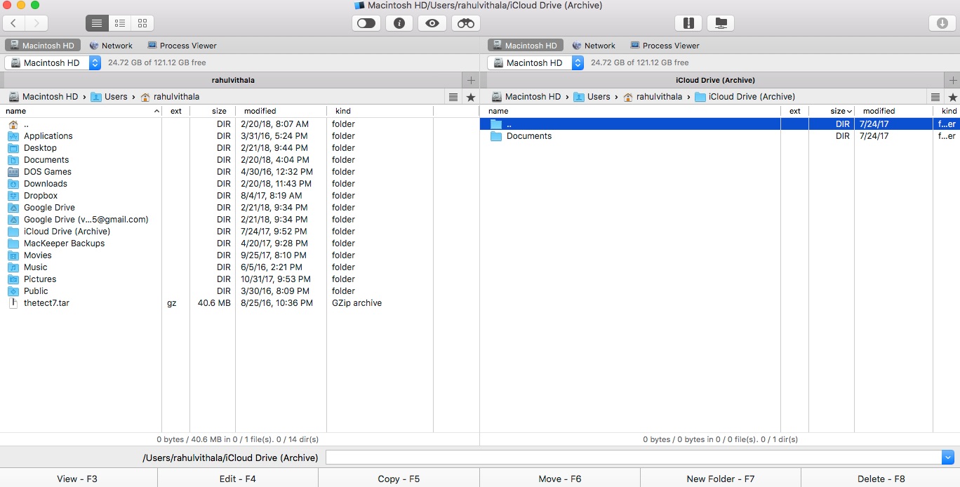 When it comes to the interface, Commander One is pretty shiny at first glance. You know, there is a bit of everything for everyone. For example, the app sports a dual-pane view, making it much easier to use. Being a dual-pane file manager, you’ll find your workflow very smooth, responsive and sweet. In the top left corner, we have buttons like Network and Process Viewer and this applies to both sides. Just under that, there are various directories where you can quickly search for the file or folder you need. Of course, the main feature is a huge dual-pane interface, sporting all of your files and folders.